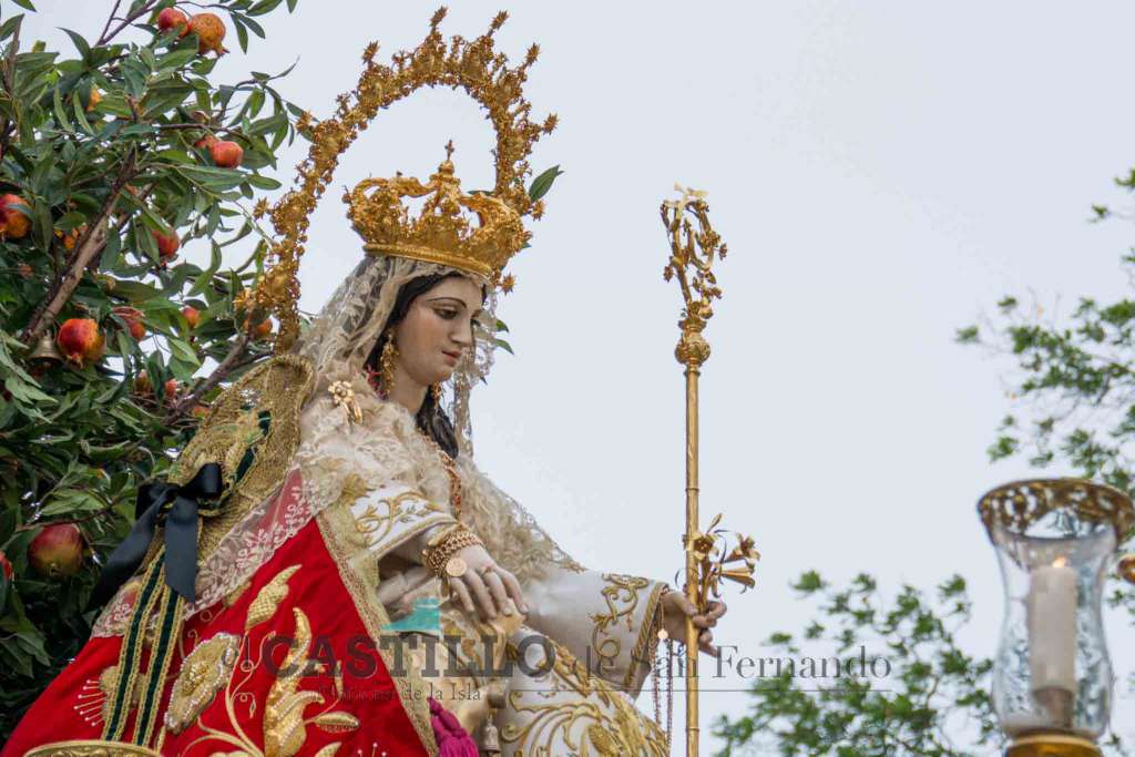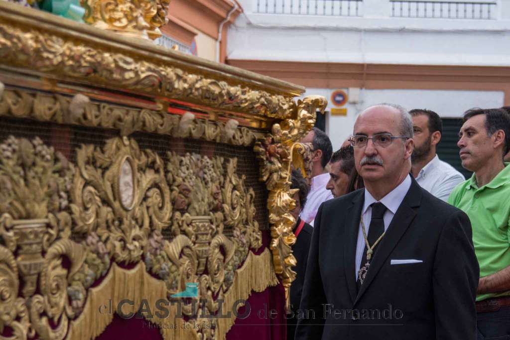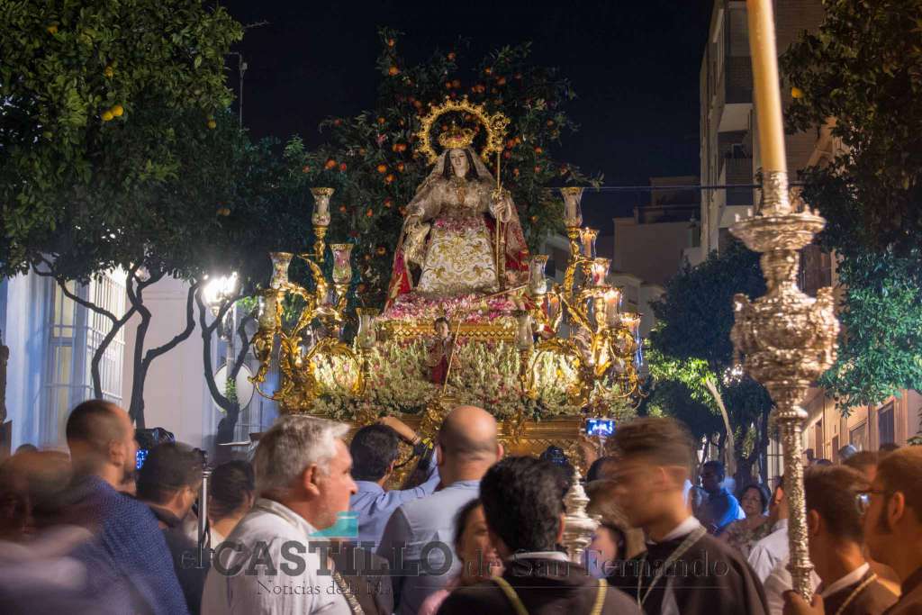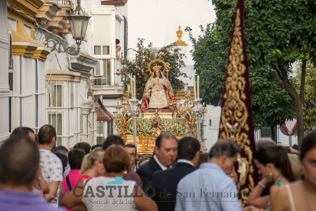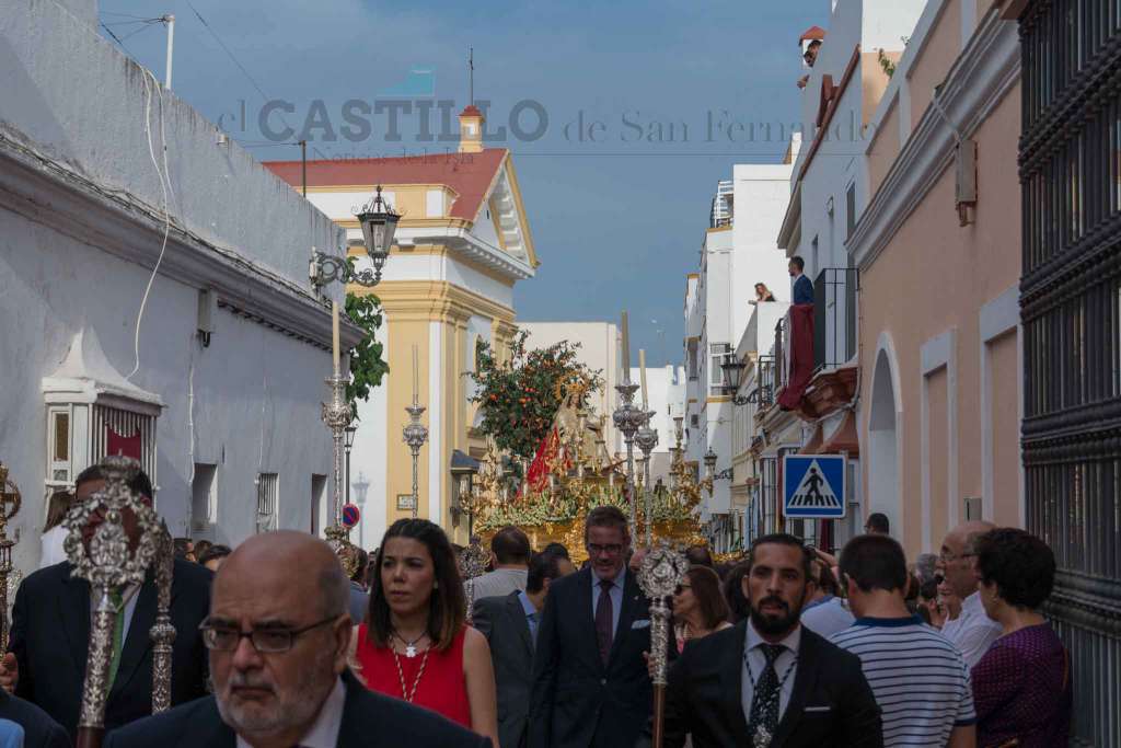 La Divina Pastora de las Almas Coronada procesionó como cada 15 de agosto por las calles de San Fernando. Era un día raro. Tan raro que el viento de levante se calmó después de un mes y como que dos horas antes había llovido.