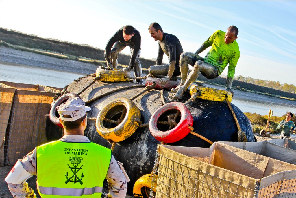 Precisamente esos infantes de marina que se han sentido a lo largo de la historia, herederos de los valores que el insigne escritor demostró, no solo cuando combatía sobre las cubiertas de las galeras o galeones o, desde estos sobre tierras enemigas, tales como la lealtad, la disciplina, la firmeza, el arrojo, etc., sino también, el ejemplo de liderazgo, compañerismo, capacidad de sufrimiento que nos reveló durante su periodo de cautiverio en Argel. Son todas ellas, los referentes que conducen a los infantes de marina de hoy a adiestrarse, entre otros y desde hace más de treinta años, en el fango de la Bahía de Cádiz, donde se requiere por su gran dureza de valores, tanto individuales como colectivos o de grupo. Valores colectivos como el compañerismo, la cohesión y el espíritu de unidad, y valores individuales como el espíritu de sacrificio, el tesón y el afán de superación.  Son estos los valores que hemos querido que hayáis compartido con nosotros, en un día tan especial, todos los deportistas venidos desde todos los puntos de Andalucía y de España y que han engrandecido la prueba con su participación en esta primera edición mixta