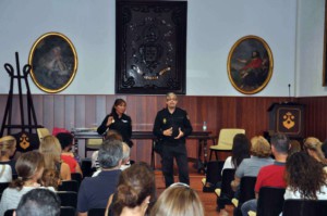 Francisco Cid Fornell explicando la exposición de este verano al concejal de educación, Antonio Rojas.