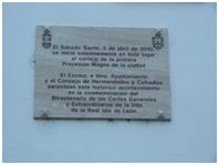 El Excmo. e Ilmo. Ayuntamiento y el Consejo de Hermandades y Cofradías perpetúan este histórico acontecimiento en la conmemoración del Bicentenario de las Cortes Generales y Extraordinarias de la Villa de la Real Isla de León".