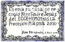 Como sin duda todos ustedes recordarán, el día 03-04-2010 tuvo lugar una procesión Magna en San Fernando… Tan magnífico acontecimiento, cómo no, se recordó mediante la correspondiente plaza, sita en la c/Colón: