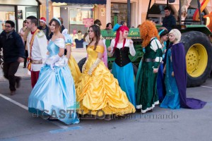 Numeroso público siguió una cabalgata con dos carrozas, pasacalle de princesas y muñecos de Disney sobre una carroza. Papa Noel saludaba a todos y tiraba caramelos al público.