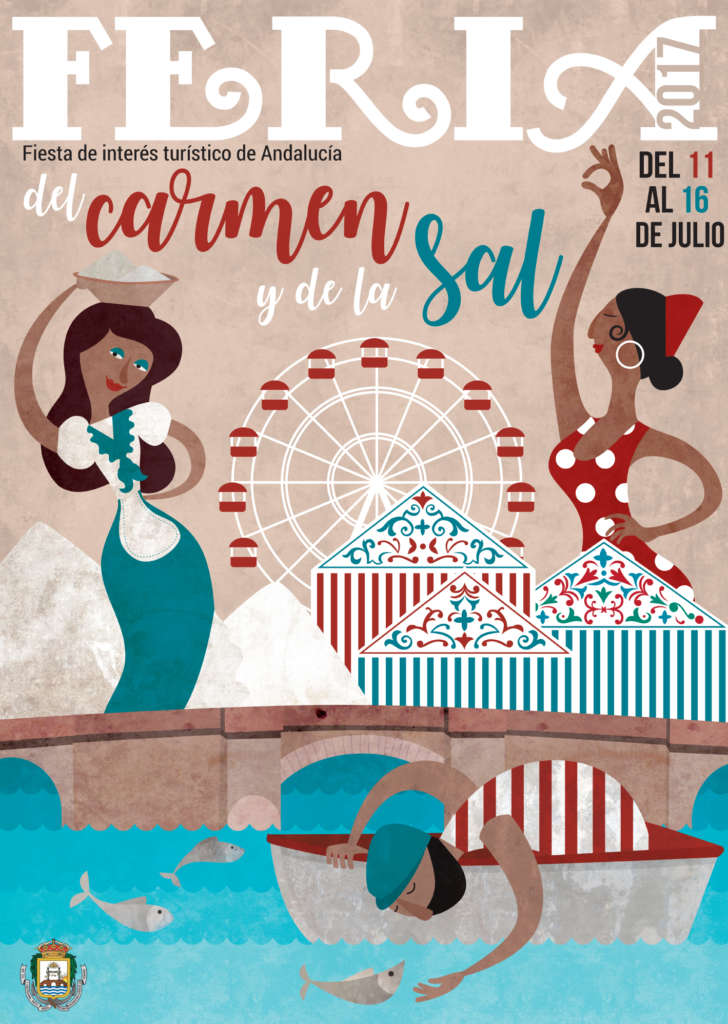 “En ambos carteles he querido destacar los elementos típicos y más representativos de la ciudad y así, el de Carnaval incluye detalles como el pirata comiendo camarones, una salinera o el guiño a la peña cultural carnavalesca 'Los Pollitos de mi compadre; mientras el de Feria muestra elementos simbólicos como el marinero acariciando y cuidando los peces bajo el puente Zuazo, la mujer salinera, la flamenca, las casetas de feria andaluzas o la noria”, ha asegurado la diseñadora gráfica para concluir.