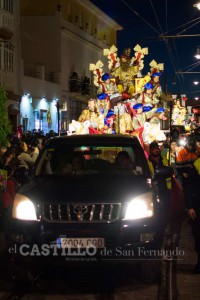 Con puntualidad británica, los Reyes Magos se bajaron en el estadio de Bahía Sur de un helicóptero cedido por la Policía Nacional, que habría sobrevolado la ciudad, provocando la curiosidad de niños y mayores. La expectación crecía con una cabalgata de Reyes que abrían 4 grandes y altas hadas de colores y a las que seguían un total de 11 carrozas, diez de ellas elaboradas por la empresa Imaginarte Creaciones. La vistosidad de la cabalgata de Reyes Magos y el mimo con el que el Ayuntamiento lleva varios años apostando por esta cita del 5 de enero, hace que cada vez sean más las personas de Cádiz, Puerto Real o Chiclana que disfrutan de la cabalgata de San Fernando.