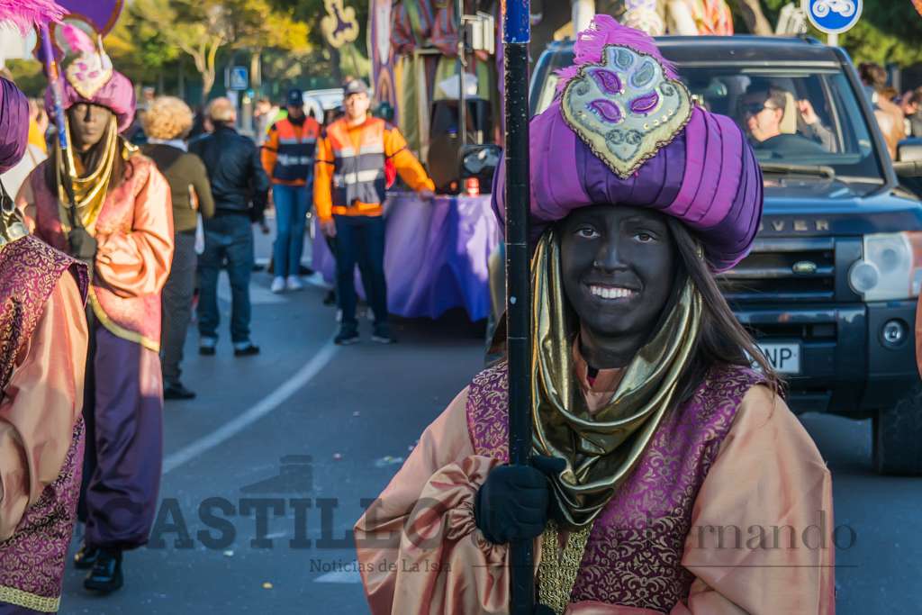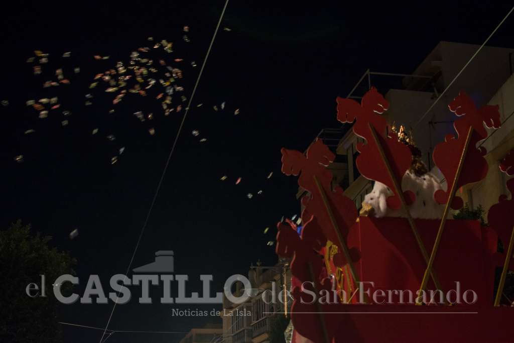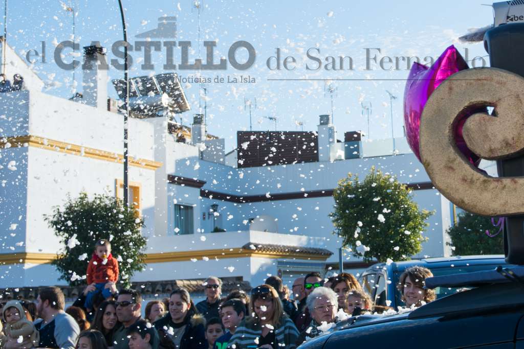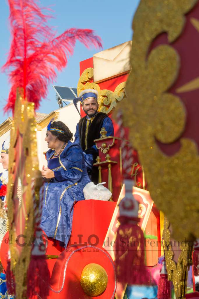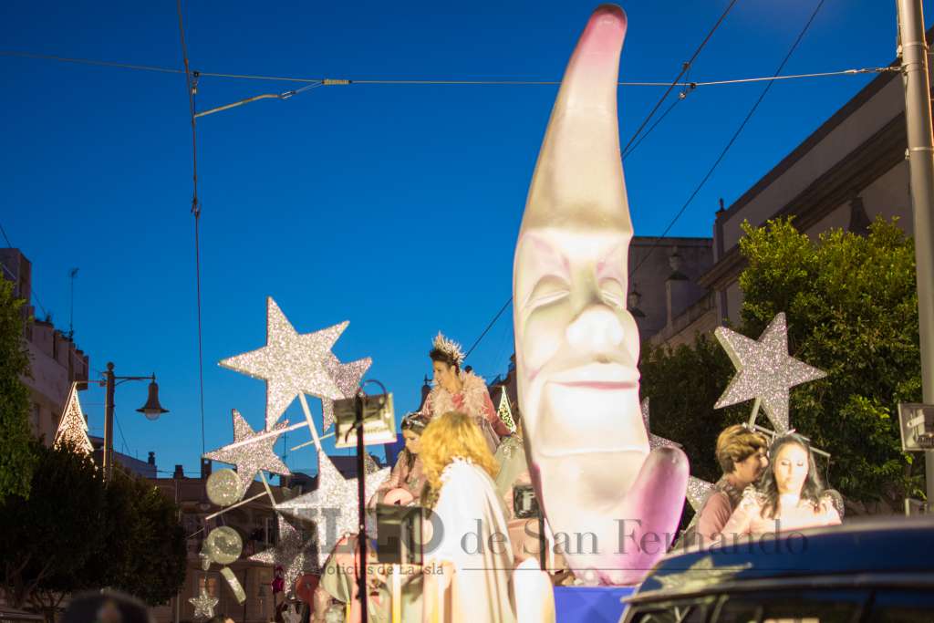 Con puntualidad británica, los Reyes Magos se bajaron en el estadio de Bahía Sur de un helicóptero cedido por la Policía Nacional, que habría sobrevolado la ciudad, provocando la curiosidad de niños y mayores. La expectación crecía con una cabalgata de Reyes que abrían 4 grandes y altas hadas de colores y a las que seguían un total de 11 carrozas, diez de ellas elaboradas por la empresa Imaginarte Creaciones. La vistosidad de la cabalgata de Reyes Magos y el mimo con el que el Ayuntamiento lleva varios años apostando por esta cita del 5 de enero, hace que cada vez sean más las personas de Cádiz, Puerto Real o Chiclana que disfrutan de la cabalgata de San Fernando.