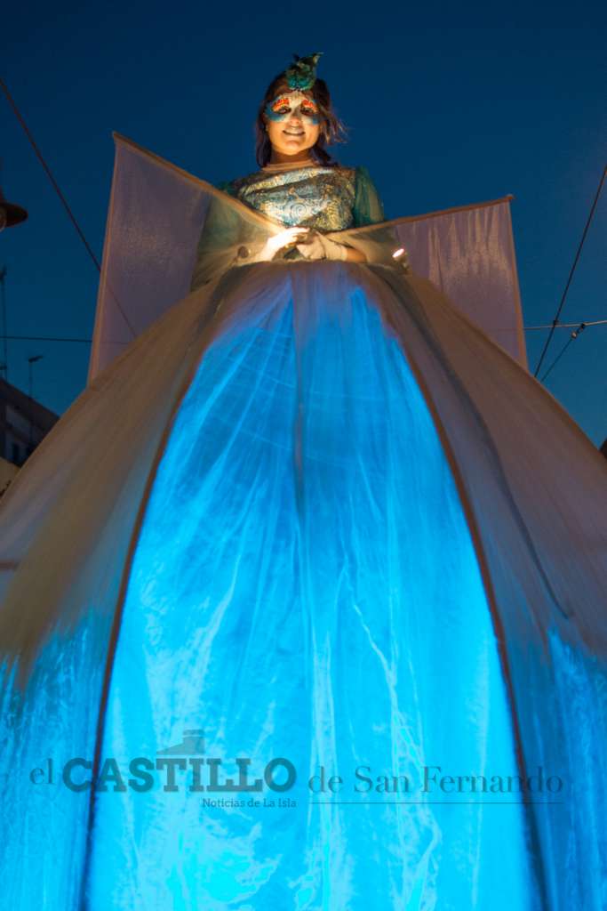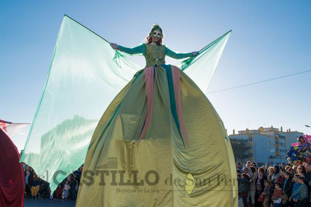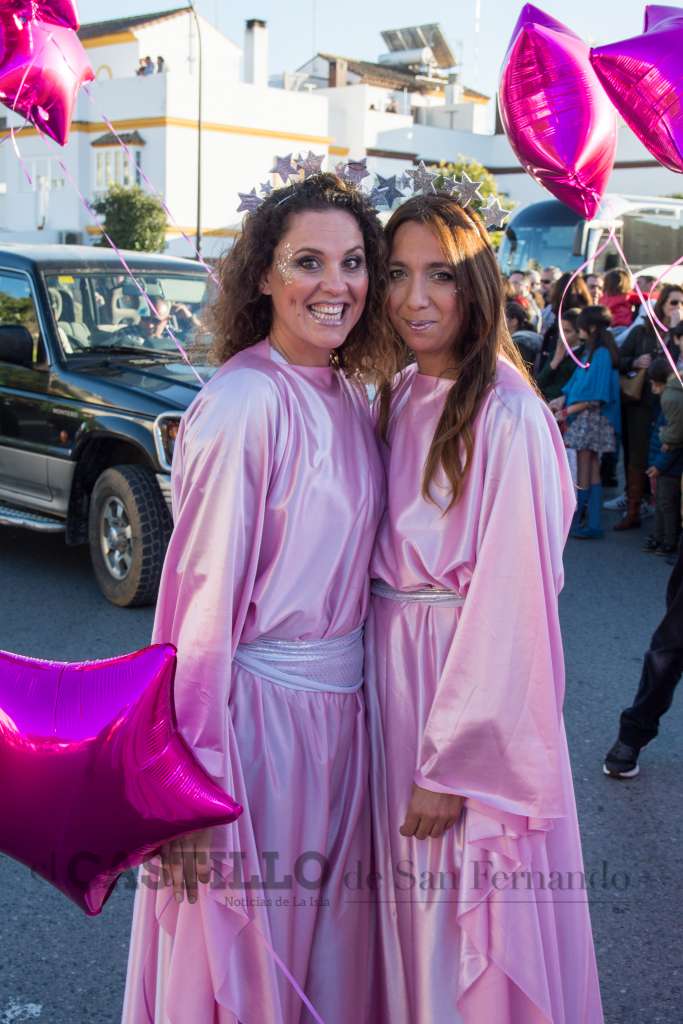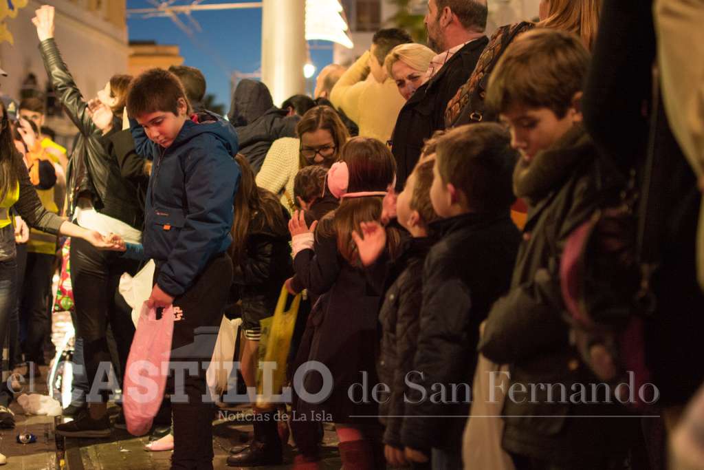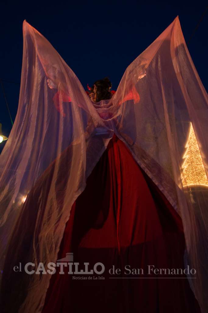 Con puntualidad británica, los Reyes Magos se bajaron en el estadio de Bahía Sur de un helicóptero cedido por la Policía Nacional, que habría sobrevolado la ciudad, provocando la curiosidad de niños y mayores. La expectación crecía con una cabalgata de Reyes que abrían 4 grandes y altas hadas de colores y a las que seguían un total de 11 carrozas, diez de ellas elaboradas por la empresa Imaginarte Creaciones. La vistosidad de la cabalgata de Reyes Magos y el mimo con el que el Ayuntamiento lleva varios años apostando por esta cita del 5 de enero, hace que cada vez sean más las personas de Cádiz, Puerto Real o Chiclana que disfrutan de la cabalgata de San Fernando.