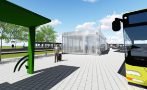 Las obras, que fueron adjudicadas a la empresa UC10 Infraestructuras, SA, se localizan justo antes de la estructura sobre el ferrocarril y de la conexión del tranvía con las vías de ADIF. El contrato incluye la construcción de tres dársenas en batería, la instalación de dos marquesinas y un pequeño edificio modular de 120 metros cuadrados para servicios y sala de espera.