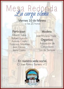 El próximo viernes 10 de Febrero a las 20.00 horas en la sede social de la asociación Calle José Ramos Borrego número 2, tendrá lugar la primera de las actividades que tiene prevista la Asociación de Cargadores "LOS DE SIEMPRE" para la Semana Santa 2017. Se trata de una mesa redonda en la que intervendrán capataces y cargadores de San Fernando en la que expondrán su opinión sobre "LA CARGA ISLEÑA".