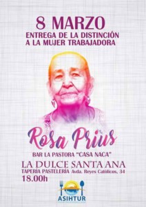 ASIHTUR homenajea a Rosa Prius del Bar La Pastora "Casa Naca" hoy en el día de la mujer trabajadora