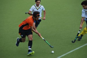 Desde el minuto uno el equipo naranja busco una presión intensa para que el equipo madrileño no tuviera opciones de jugar con la bola. Fruto de ello, fue el gol de penalti córner tras un desvío de José Mari Arriaza en el minuto tres.