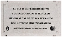 "El día 28 de febrero de 1996 fue inaugurado este Museo siendo Alcalde de San Fernando Don Antonio Moreno Olmedo. Ayuntamiento de San Fernando"