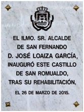 "El Ilmo. Sr. Alcalde San Fernando D. José Loaiza García, inauguró este Castillo de San Romualdo, tras su rehabilitación, el 26 de marzo de 2015."