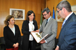 Patricia Cavada le ha hecho entrega a Sánchez Casas del libro 'El Carmen de San Fernando: estudio histórico artístico', escrito por los carmelitas descalzos especializados en Historia del Arte Juan Aranda Doncel y Juan Dobado Fernández.