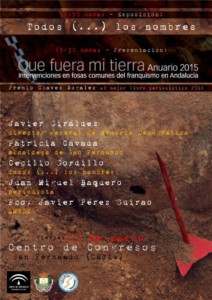La Asociación por la Recuperación de la Memoria Democrática, Social y Política de San Fernando (AMEDE) ha organizado para el próximo viernes en el Centro de Congresos de la ciudad la presentación del libro “Que fuera mi tierra” del periodista Juan Miguel Baquero, anuario 2015 de intervenciones en fosas comunes del franquismo en Andalucía.
