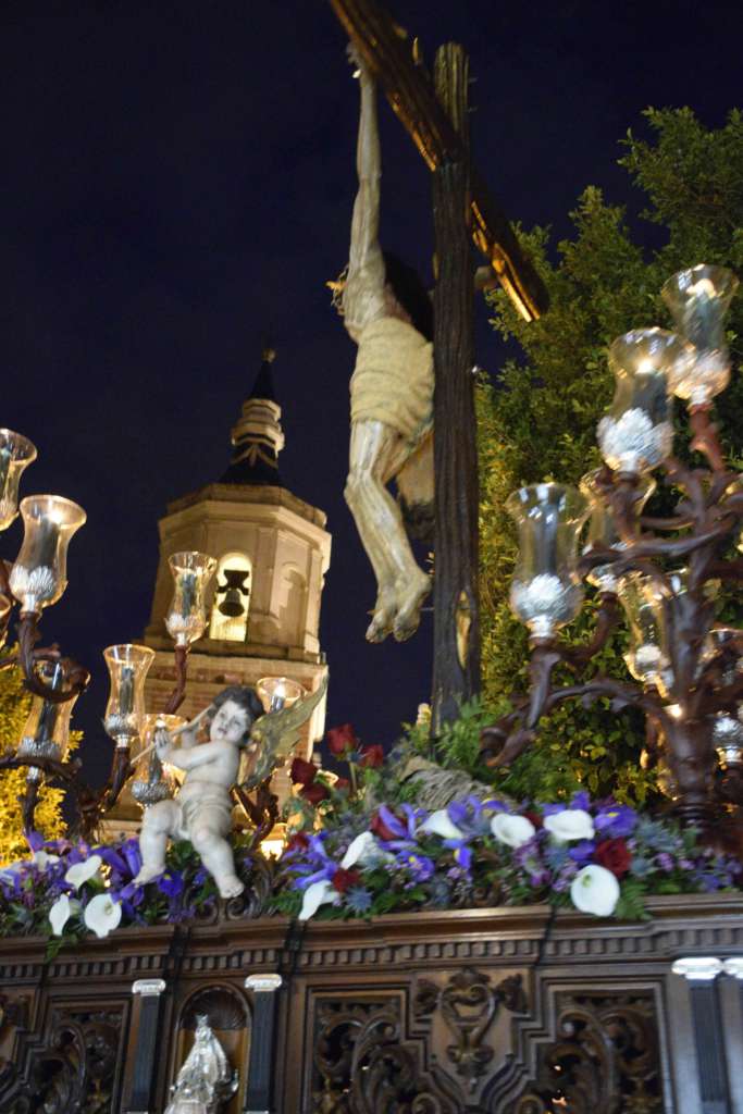 En el interior de la Iglesia Mayor, todos los bancos reservados para las distintas hermandades. El Lignum Crucis de la Vera-Cruz sirvió para señalar las estaciones del Vía Crucis por el interior del templo.