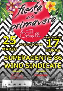 La Ceterilla del Zaporito quiere dar la bienvenida a la primavera este sábado 25 de marzo a partir de las 17:00 horas, y para ello contará con la actuación de los grupos 'Los WindSindicate' y de 'Super Agente 86', ambos caracterizados por llevar las mejores versiones de todos los tiempos.