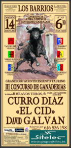 Gran acontecimiento taurino en la provincia que tendrá cita en Los Barios, en la Plaza de toros 'La Montera' el próximo domingo 14 de mayo a las 18:30 horas  'III Concurso de Ganaderias', donde se lidiarán seis toros de l amano de los diestros Curro Díaz  "El Cid" y David Galván.