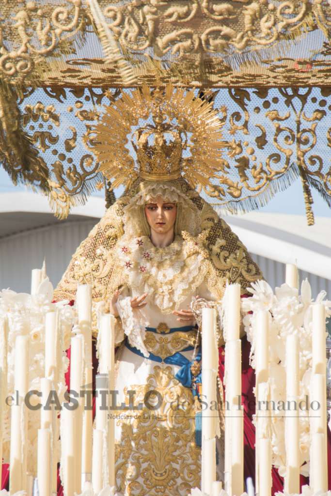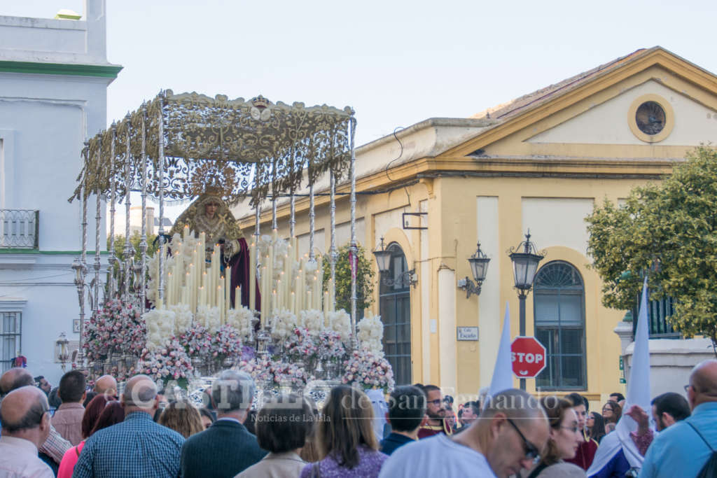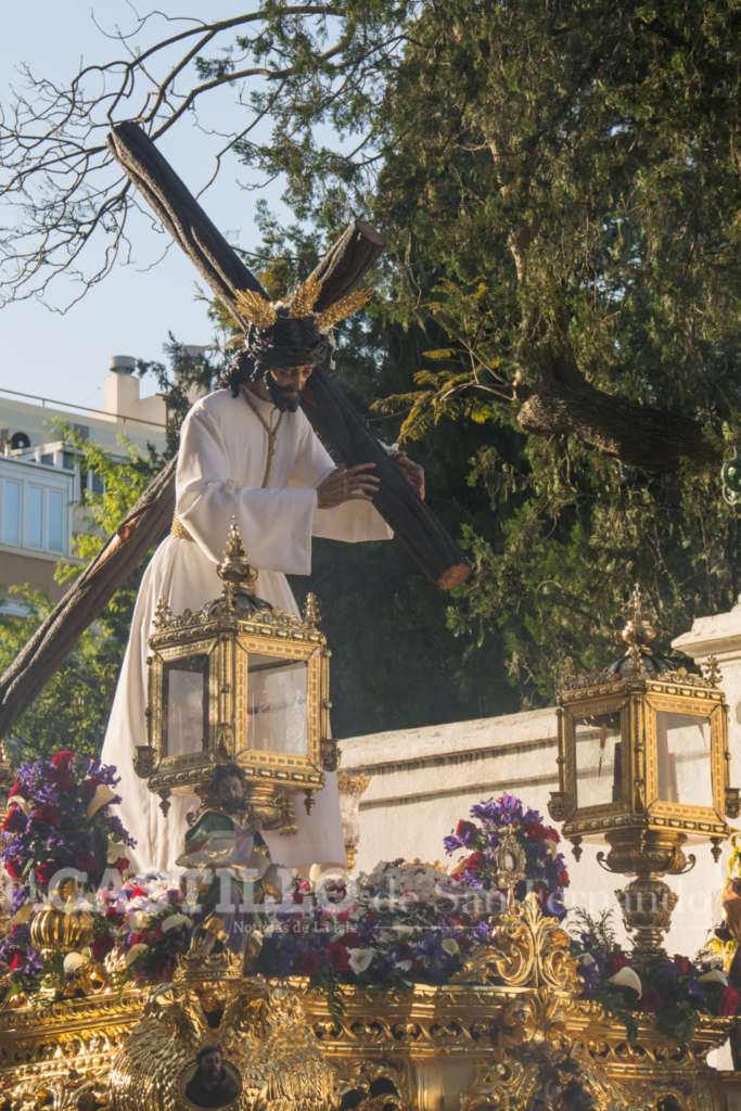El Gran Poder vistió túnica blanca por el 25 aniversario de la sacramentalidad de la hermandad, recuperando una antigua estampa y llenando las calles a su paso. Se recogió de madrugada.