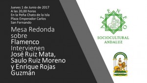 Como antesala a su presencia en la Feria del Libro de la Isla 2017 el Ateneo Sociocultural Andaluz organiza una Mesa Redonda sobre Flamenco con el título "Orígenes del Flamenco". Será el jueves 1 de junio a las 20,00 horas en la Peña Chato de la Isla sita en la Plaza Emperador Carlos de nuestra ciudad.