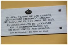 Sin duda, uno de los edificios más emblemáticos e importantes de la ciudad es nuestro Teatro Las Cortes, tanto por su historia, como por su actual función, servir de teatro principal de la ciudad. No contamos, obviamente, con la placa original de su inauguración, allá a principios del siglo XIX; pero sí con una que menciona el día de su inauguración: