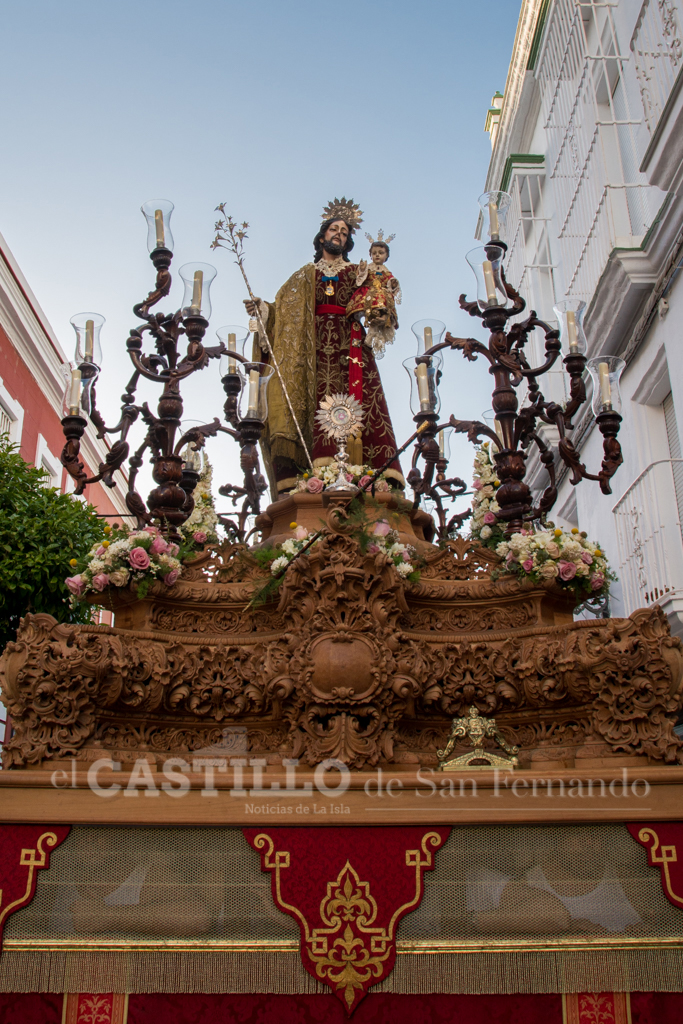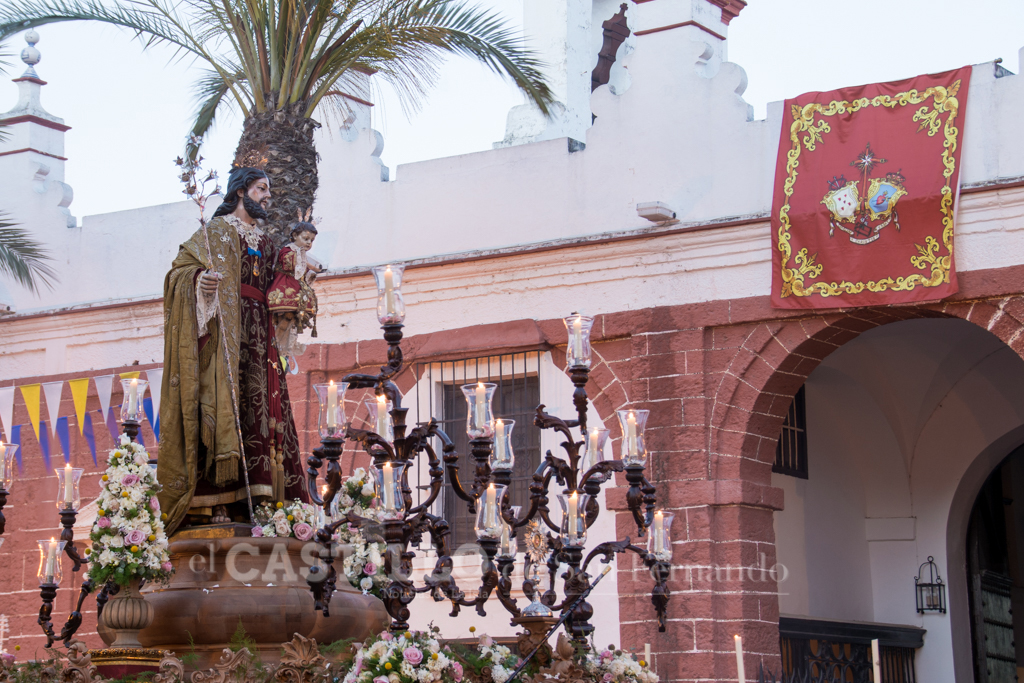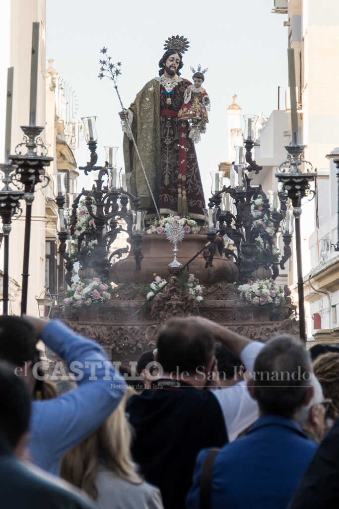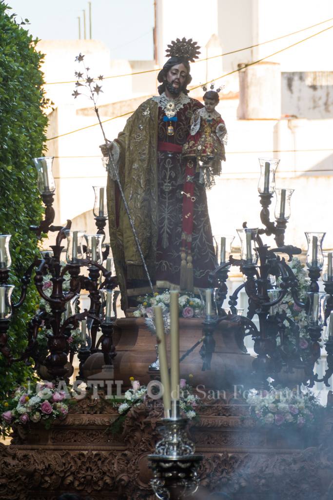 San Fernando vivió un nuevo 1 de mayo con su Patrón San José en las calles. Tarde soleada y mucho público llenado el itinerario de la procesión. La banda sevillana de Nuestra Señora de las Nieves de Olivares, viene celebrando su 150 aniversario, ya que el primer contrato que se conserva de la banda data de 1869, para acompañar al paso de la Soledad de Albaida del Aljarafe, acompañó el paso de San José por las calles.