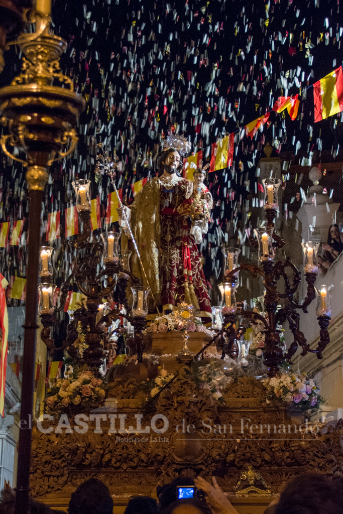 La procesión lució esplendorosamente en la bajada de la calle San José, donde hubo una profusa lluvia de pétalos, que se repetiría también en un itinerario que mantuvo el realizado el año pasado.
