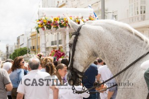 La Hermandad del RocÃo de San Fernando pudo pasear la carreta con el Simpecado por la calle Real este lunes, después de no poderlo hacer el año pasado por la lluvia. Los romeros de San Fernando pasaron por calles como San Rafael, Colón, Rosario y Real, siendo recibidos por alumnos de colegios como La Salle, Miramar y CompañÃa de MarÃa.