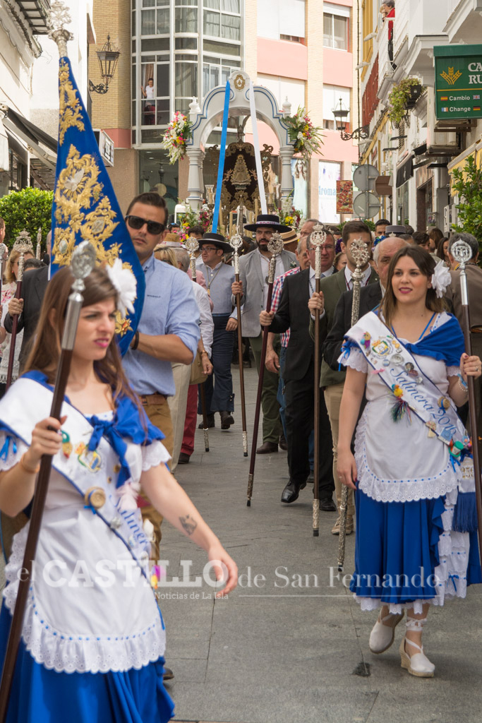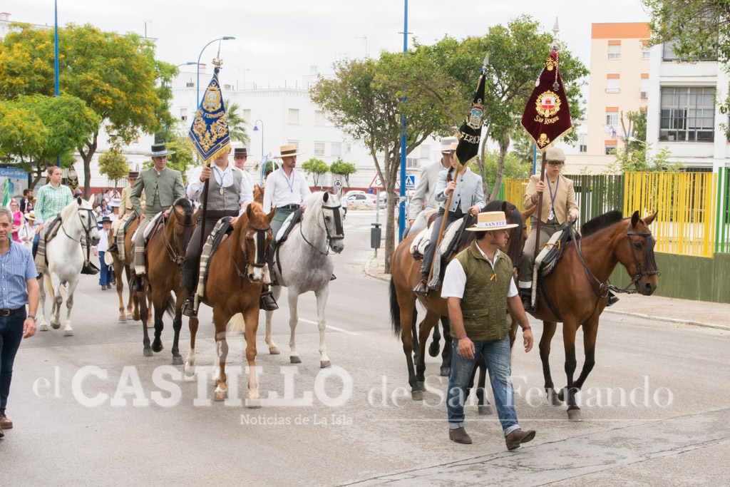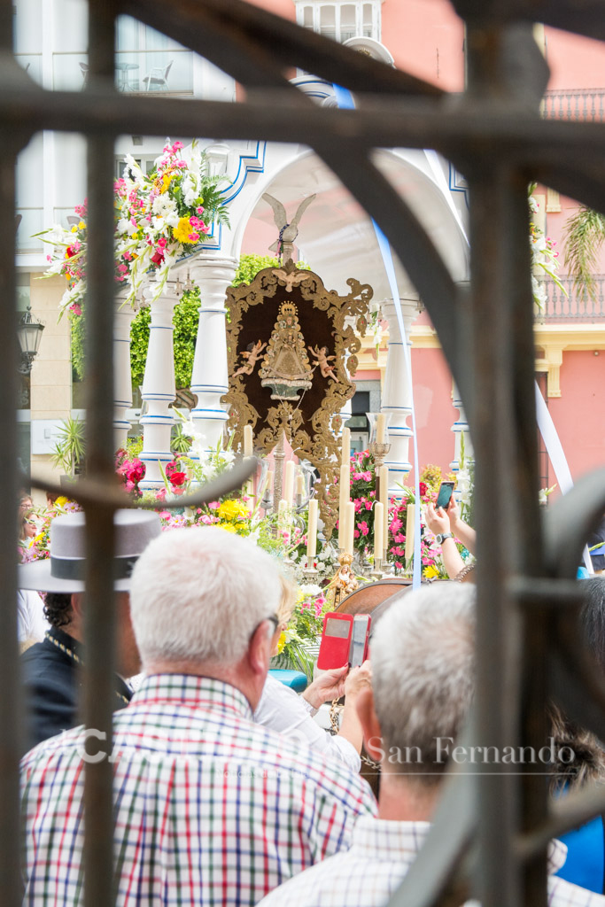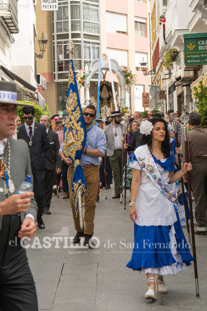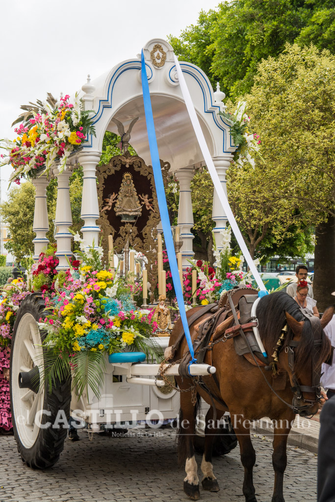 Tras despedirse del Patrón de San Fernando, San José y del Regidor Perpetuo, Jesús Nazareno, en la Iglesia Mayor Parroquial, fueron hasta El Carmen para despedirse de la Patrona de San Fernando, la Virgen del Carmen. Tras un sesteo en el Parque de Sacramento, la Hermandad partió a las 17:30 horas hasta Sanlúcar de Barrameda, donde esta mañana a las 11:00 horas ha embarcado para cruzar el RÃo Guadalquivir.