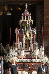 En el itinerario hubo seis altares y tres alfombras que potenciaron el paseo de las personas a lo largo del mismo. Se echó en falta más romero, pues junto al mismo se echaron ramas de olivo y abetos, aunque todo en escasa proporción.