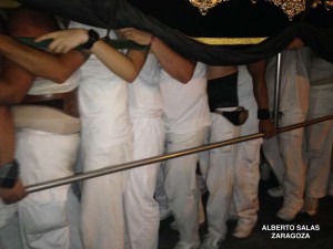 Momentos duros en esa tarde-noche para los cargadores gaditanos que al gran esfuerzo que supone llevar un paso debieron añadir el calor sofocante del interior de las andas, pues si en el exterior el aire era irrespirable, la temperatura interior, con toda lógica, superó con creces esa alta cifra, dada la poca ventilación que ofrecen los respiraderos, el efecto recalentamiento de los cuerpos de los cargadores como consecuencia del trabajo que realizan y el apiñamiento en que trabajan en Cádiz dado sus palos longitudinales con cargadores muy pegados unos a otros, pecho con espalda.