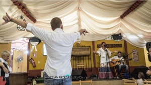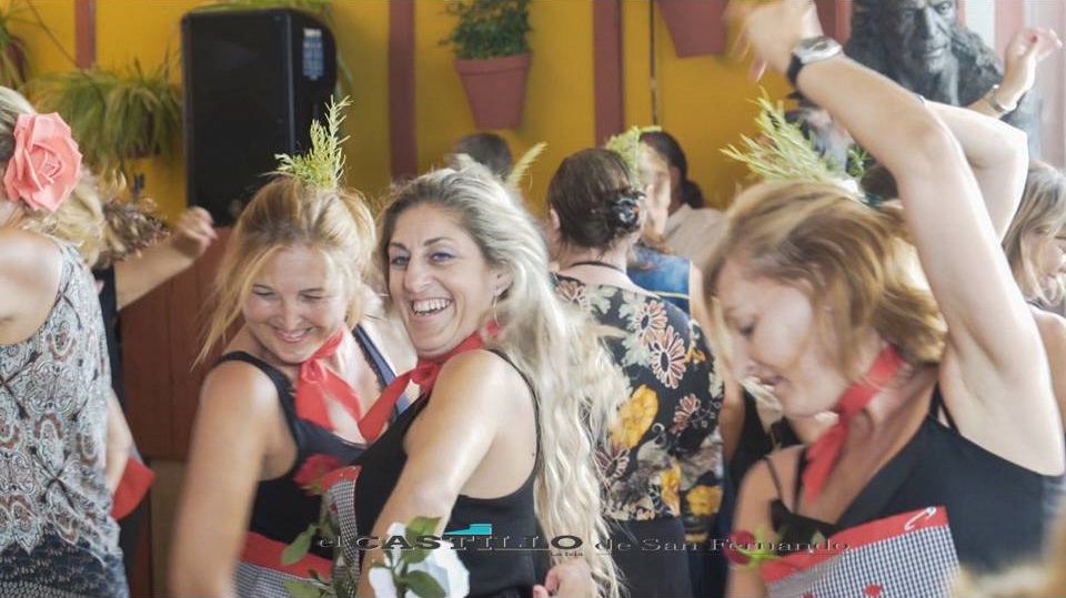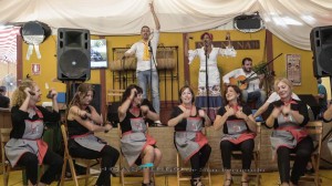 Destacar la buena acogida que tuvo la jornada del sábado, con el hermanamiento de las asociaciones, el buen ambiente y las diferentes actuaciones que hicieron del sábado un día muy especial para esta caseta. La escuela de baile de la Fragua ofreció el baile colectivo (Flashmob) “Tacón de los Cabales”, el cual se grabó el 20 de mayo en el Real Carenero junto al puente Zuazo con coreografía y participación de Antonio Canales y que se presentará en el Centro de Congresos el próximo 25 de julio. Además la actuación de Joaquín de Sola acompañado de Víctor Rosa al toque y el taller de castañuelas y actuación de María José Coca.
