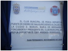 "El club municipal de pesca deportiva Puente de Hierro se inaugura siendo Alcalde de la ciudad D. Manuel María de Bernardo Foncubierta y presidente del club municipal de pesca deportiva D. Luis Armenta Rodríguez.
