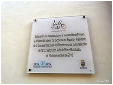 "Este centro fue inaugurado por el Vicepresidente Primero y ministro del interior del Gobierno de España y Presidente de la Comisión Nacional del Bicentenario de la Constitución de 1812, Señor Don Alfredo Pérez Rubalcaba, el 10 de noviembre de 2010".