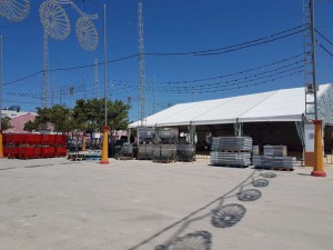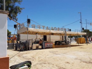 Los trabajos se ultiman en esta jornada en el recinto ferial de La Magdalena, donde este miércoles 12 se hará el acto de inauguración con la proclamación de salineras y la actuación de la cantante jerezana Marina Romero, en un escenario que se montará en la calle Camarón de La Isla, por celebrarse el 25 aniversario del fallecimiento de José Monje Cruz, Hijo Predilecto de San Fernando.