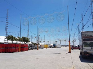 Últimos preparativos en el Ferial de La Magdalena para el inicio de la Feria del Carmen