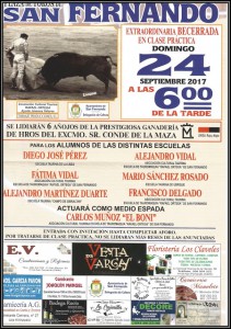 En la becerrada actuarán los siguientes alumnos: Diego José Pérez (Escuela Taurina Municipal Linense), Mario Sánchez Rosado (Escuela de Ubrique), Alejandro Martínez Duarte (Escuela del Campo de Gibraltar), y los tres isleños de la Asociación Cultural Taurina Rafael Ortega de San Fernando; Francisco Delgado,  Alejandro Vidal y Fátima Vidal.