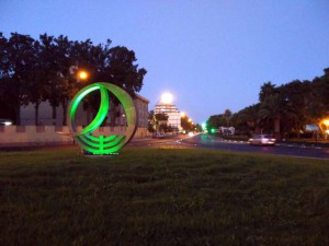 Iluminan de color verde la rotonda de Pery Junquera por las enfermedades mitocondriales