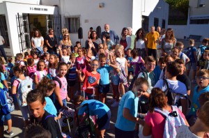 La alcaldesa se ha dirigido en el patio del centro a los niños y niñas, al profesorado del centro educativo y a representantes de las asociaciones de padres y madres, alentándolos a conseguir, entre todos, los logros marcados para el curso recién iniciado, basados primordialmente en una oferta de calidad educativa en la que, como indicó Cavada a los medios de comunicación, el Ayuntamiento ha realizado una firme apuesta en sus competencias, así como la Junta de Andalucía. “La cooperación y colaboración entre las administraciones es fundamental en este ámbito. En nuestra comunidad autónoma se hace una apuesta clara y firme por la educación pública, que este año viene marcada por un incremento del profesorado a pesar del descenso en el número de niños y niñas motivado por el descenso en los índices de natalidad”.