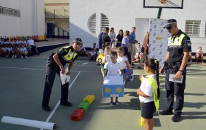 Los niños y niñas han podido disfrutar de unos talleres impartidos por la Policía de Barrio consistentes en la instalación de un circuito en el patio del centro, donde los agentes han explicado al alumnado el recorrido y orientado sobre la señalización vertical y horizontal para que conozcan las normas circulatorias sobre el terreno. También el taller de guiñol ha hecho las delicias de los más pequeños y se ha mostrado una maqueta gigante de la DGT donde el profesorado explica los viales y servicios ciudadanos (edificios públicos, plazas, etc.) y maneras de acceder a ellos a pie o en vehículo.