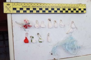 Es en el registro, donde se procede a la detención de los dos investigados, se intervienen trece envoltorios de plástico de diferente tamaño de cocaÃna, un bote con restos de sustancia para la preparación de la droga, una balanza de precisión, hachÃs, marihuana, varios blister de esteroides, dinero en efectivo y cuchillos con restos de sustancia estupefaciente.