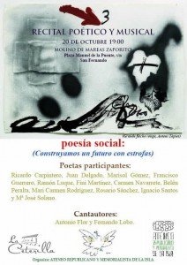 El Ateneo Republicano y Memorialista de La Isla ofrece un recital poético musical que tendrá lugar mañana día 20 a las 19:00 horas en el Molino de Mareas el Zaporito ubicado en la plaza Manuel de la Puente s/n en San Fernando. Entrada gratuita hasta completar aforo.