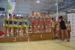 Se inició la Competición sobre las 10:00 h. con los Conjuntos de la Categoría Pre-Benjamín Copa, saliendo a competir el Conjunto del Club con Manos Libres y compuesto por Irene Gandul Roa, Sara Gándara Vigo, Lola Rueda Miro, África Aparicio Pavón e Irene Saucedo Pérez con un gran pase, sin ningún fallo, consiguiendo subir a lo más alto del pódium al obtener la medalla de oro.