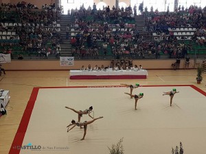 A continuación el Conjunto Junior Absoluto con 2 pares de Mazas y 3 Aros y formado por: Laura Benjumeda Mendizábal-Rodríguez, Lucía Xiaoyan Estudillo Terrada, Camila Pía Becerra Santana, Marta Bailon Martin y Paula Rodríguez Parada, realizó 2 muy buenos pases consiguiendo la medalla de plata.