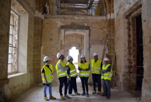 A tenor de lo indicado por la dirección facultativa, los trabajos de estructura del edificio están ya prácticamente terminados, y será a principios de noviembre cuando finalicen definitivamente. Las tareas de restauración se encuentran en una fase bastante avanzada, especialmente en el caso de las salas isabelina, mozárabe, la capilla y el grupo escultórico superior exterior del inmueble. Los trabajos se centran también en culminar la escalera monumental de acceso y el patio de la antigua cárcel donde se habilitará un nuevo espacio de atención al público, mientras que ya se está actuando en los revestimientos interiores y en una extensa superficie del exterior, donde se actúa ahora colocando la capa de homogeneización tras la restauración que dejará preparados sus muros para la imprimación.