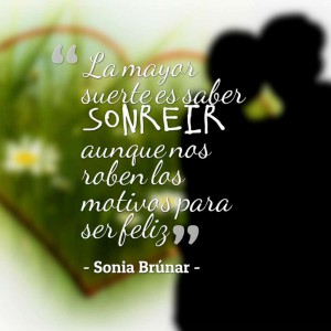 No es mala suerte que lo que has vivido, por mucho que duela, por muy injusto que parezca. La suerte ha sido tu más fiel amiga y, desde siempre, ha sabido enfrentarte a las mayores tormentas para que llegases a ser la gran persona que eres, como esposa, madre y familia de todos los que te rodean, siendo o no de tu sangre. Tienes suerte de haber vivido dos amores verdaderos, sin pensar en el tiempo que duró, pues éste siempre resulta efímero cuando somos felices; tienes suerte de seguir estando aquí, dejándote ayudar por los que tantas veces has ayudado; tienes suerte de poder viajar algún día al otro mundo, satisfecha de haber aportado tanto a este que dejarás atrás; tienes suerte, pues conocerte es quererte y quererte, ya de por sí, es la mejor suerte…