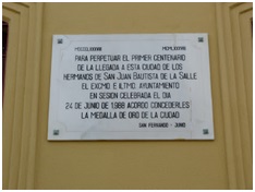 "Para perpetuar el primer centenario de la llegada a esta ciudad de los Hermanos de San Juan Bautista de La Salle el Excmo e Iltmo Ayuntamiento en sesión celebrada el día 24 de junio de 1988 acordó concederles la medalla de oro de la ciudad.