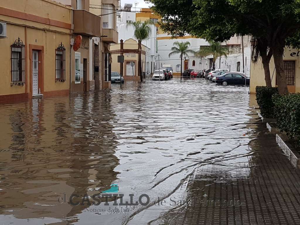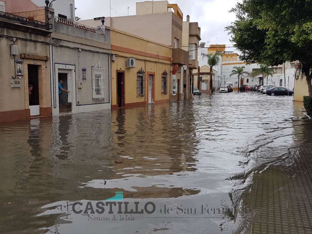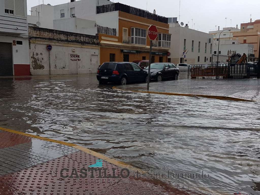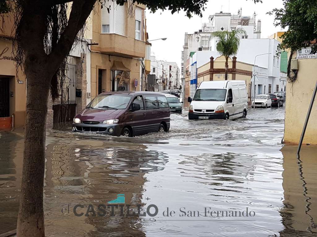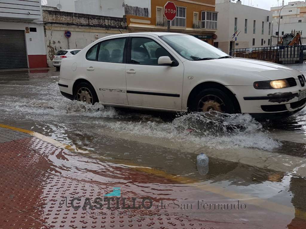 La lluvia caída a las 15.00 horas de la tarde en San Fernando ha provocado de nuevo inundaciones en las zonas bajas de la ciudad, en especial en el entorno de la Plaza de Toros, calle San Marcos, Buen Pastor y también en Pery Junquera.