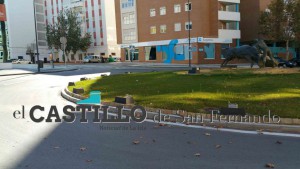 La rotonda donde se aprecian los bordes metálicos en su perímetro.