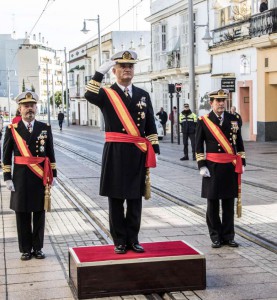 Esta mañana ha tenido lugar en el edificio-palacio de la antigua Capitanía General de San Fernando la tradicional celebración de la Pascua Militar. El Almirante de la Flota, Juan Rodríguez Garat, en representación de Su Majestad el Rey, ha sido el encargado de presidir el acto que consistió en una revista de la fuerza presente, alocución del almirante en el Salón del Trono y desfile militar por la calle Real.