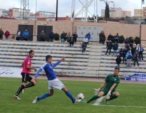 El ritmo del primer tiempo era tremendo y la ausencia de goles era motivo de sorpresa para los espectadores, que vieron cómo Óscar Martín y Francis Ferrón probaron fortuna desde lejos y cómo Wilfred volvió a amargar a un azulino. Esta vez, una mala salida del portero palaciego dio opción a Theo para disparar desde la frontal. Sin embargo, la reacción del exazulino evitó la diana.